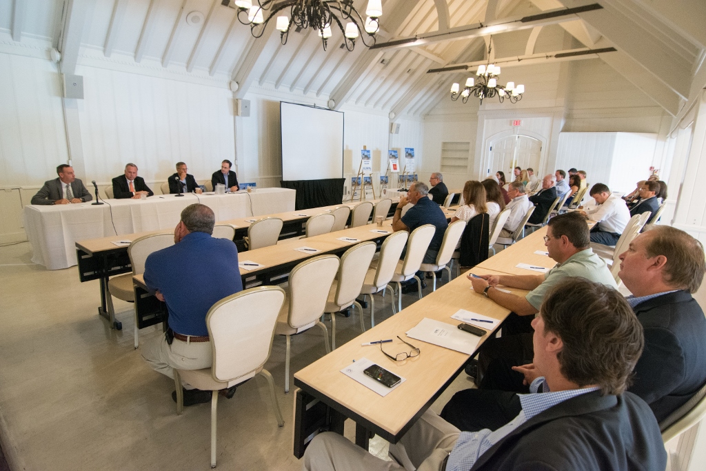 The concluding seminar, after breakfast on Friday, provided an economic forecast given by four leading bankers. Chris Hilton, EVP and Chief Credit Officer at Suffolk County National Bank moderated the panel discussion that included Michael Vittorio, President, First National Bank of Long Island, Kevin Santacroce, EVP and Chief Lending Officer, Bridgehampton National Bank and Robert Stratford, Managing Director and Chief Lending Officer, Commercial Lending at New York Commercial Bank.